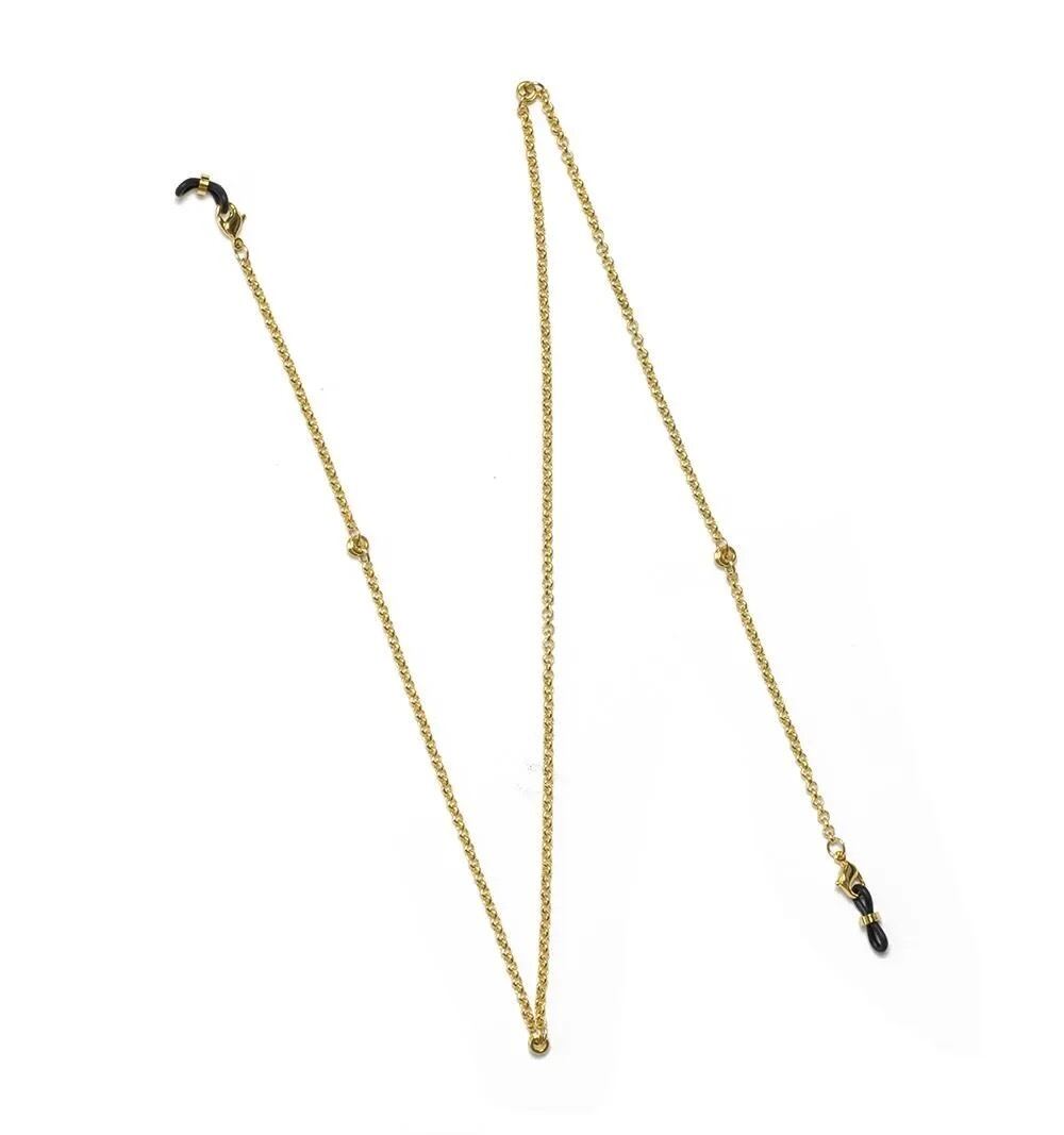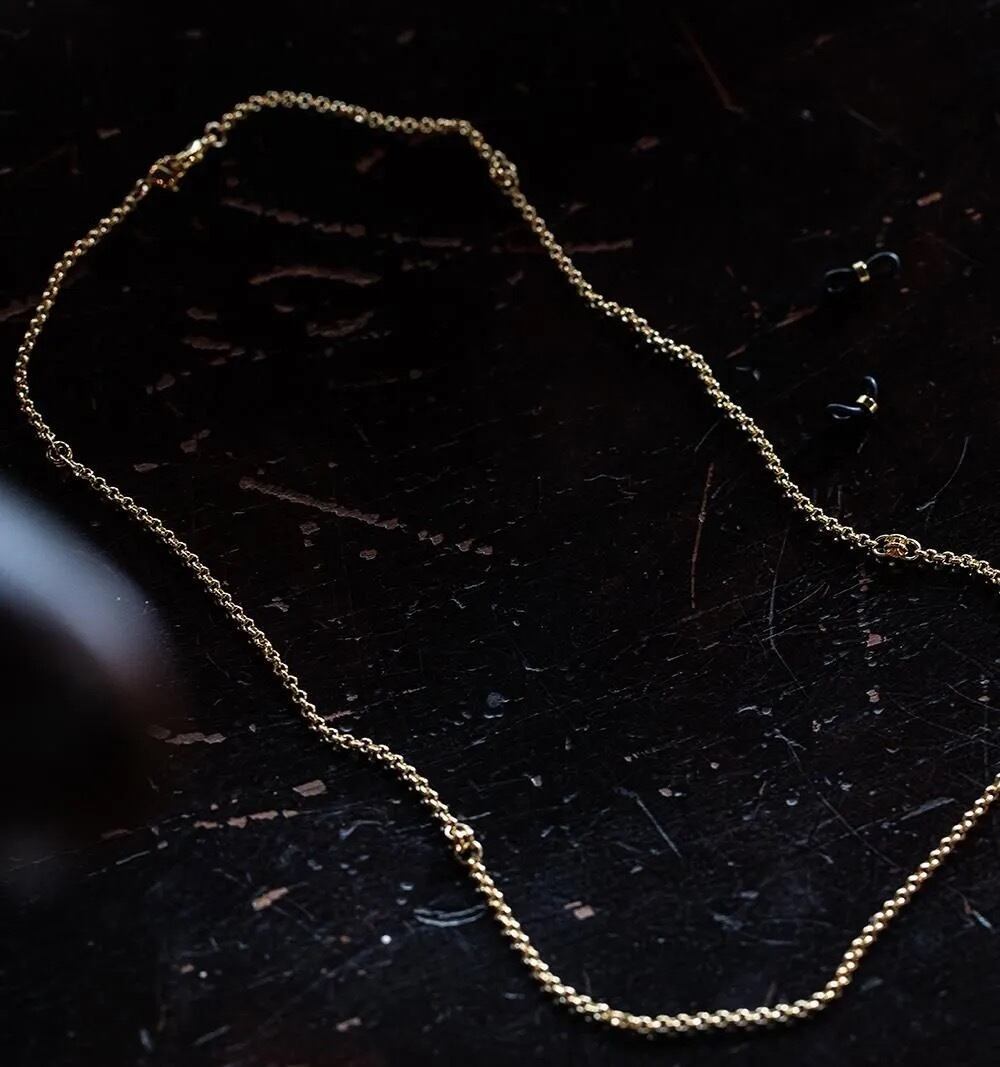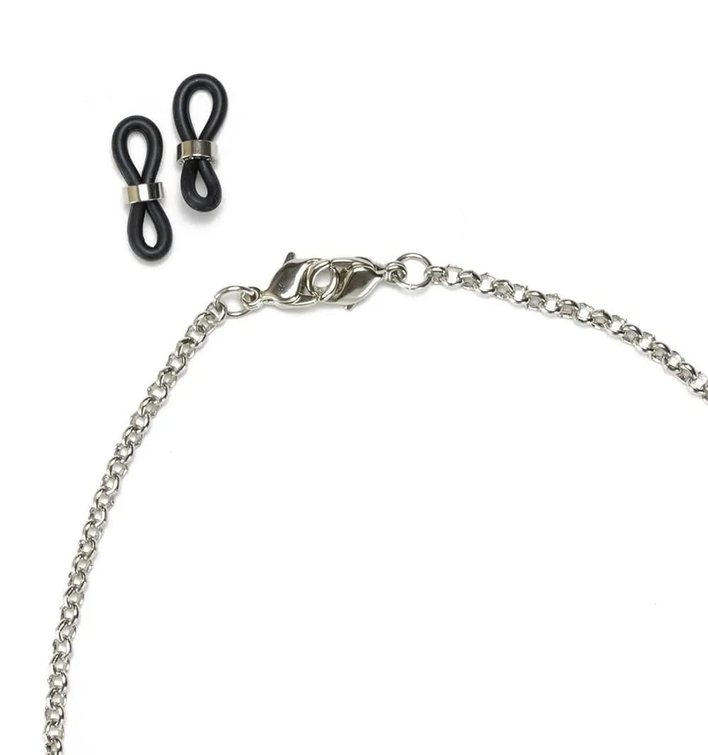 メガネチェーンにもネックレスにもなる2WAYタイプのグラスチェーン。両端のカニカンからゴム具を外すだけで簡単にアレンジできるので、実用性とアクセサリー感を両方楽しめます。