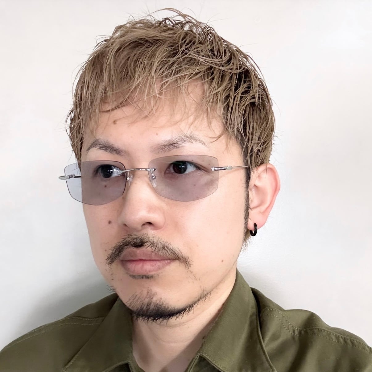 当店オリジナルのレンズシェイプとカラーレンズで作成したリムレスフレーム。