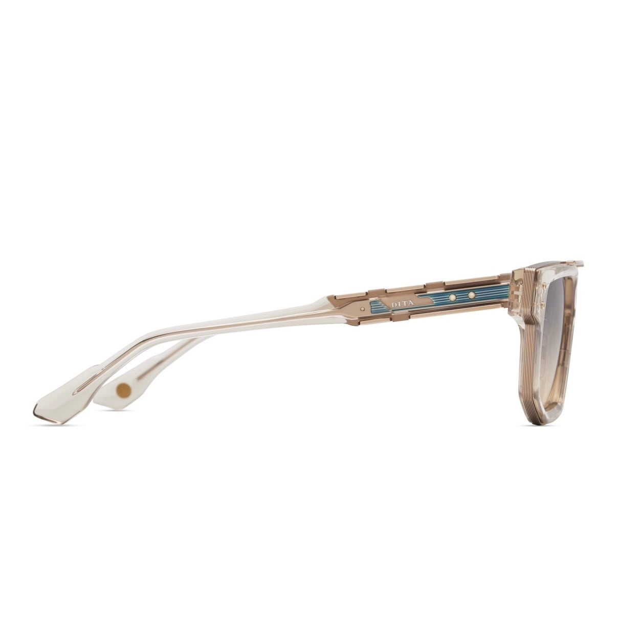 ツーブリッジを採用したウェリントンを、エッジの効いた角張ったシェイプにアレンジしたコンビネーションフレームで、DITAらしい無骨で重厚感ある見た目を再現しています。
