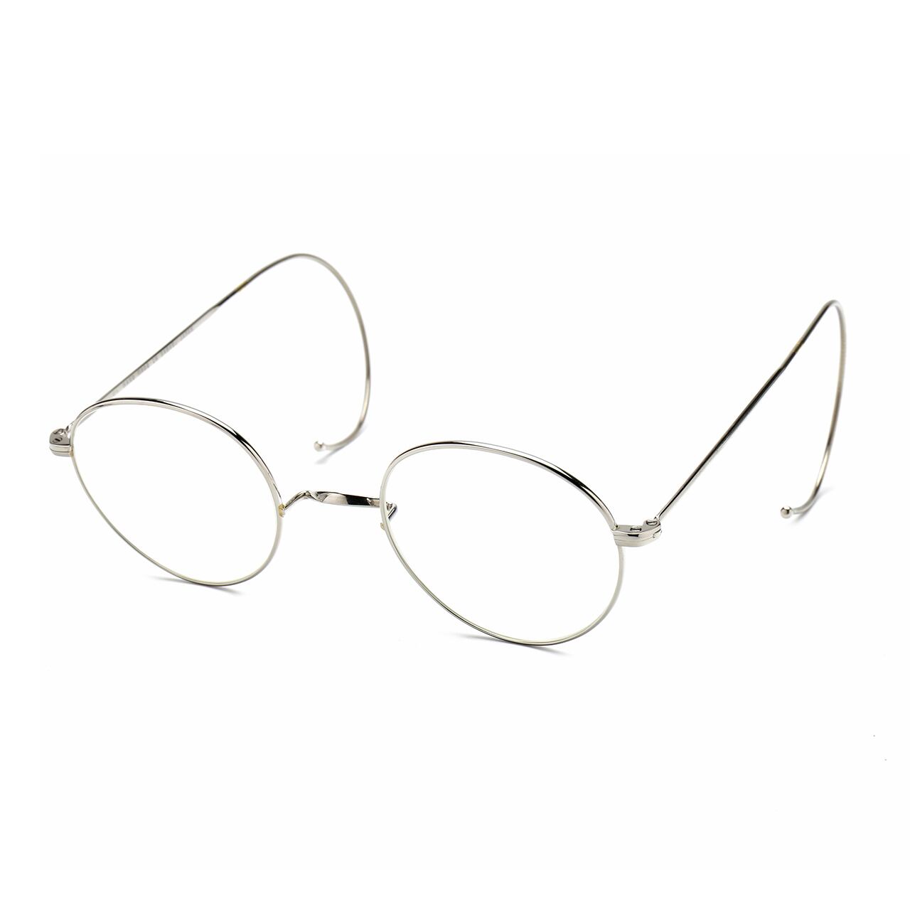 洗練されたデザインとサンプラチナの柔らかい光沢が特徴の丸眼鏡。