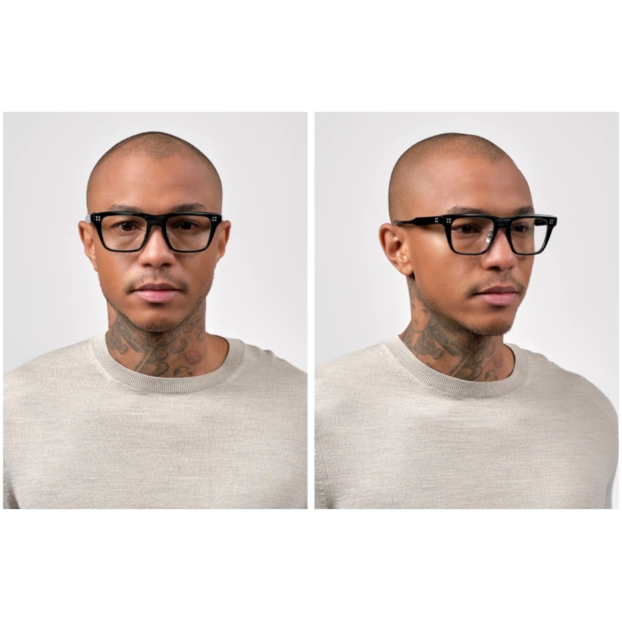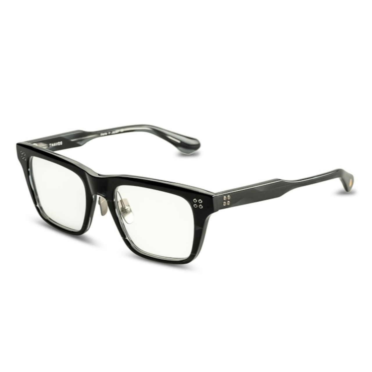 定番のクラシックなウェリントンスタイルに大胆に16の六角ビスを施したモダンなアイウェア。