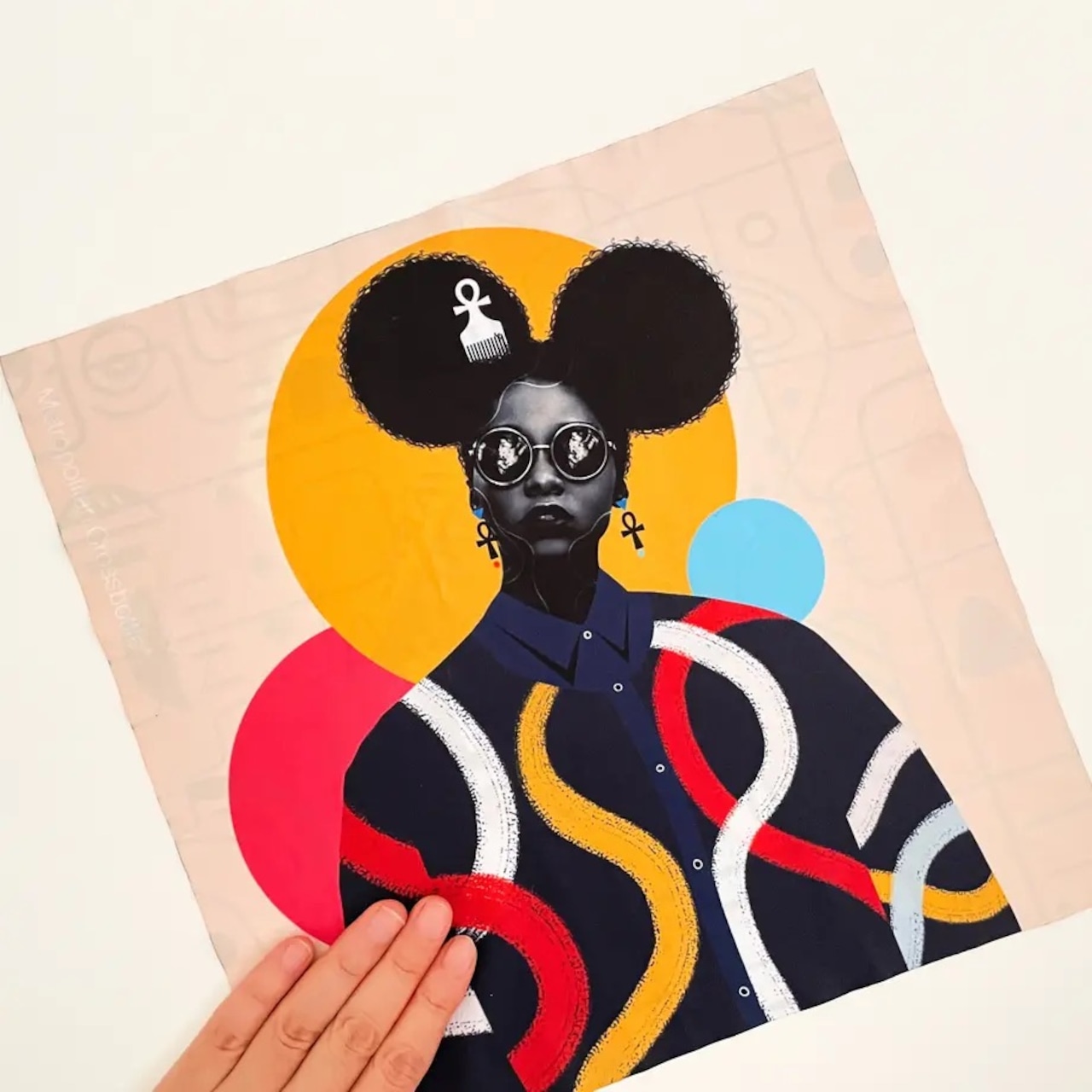四つ角を引っ張りスカーフアートのように飾るのもいいですし、額装もオススメします。